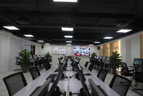 经济模拟实验室位于科教楼B座1105室,使用面积140m2,配有曙光壹备-16G终端服务器1台,唯瑞VS553L LED显示屏1套, NEC牌NP-CA4350X投影系统1套,鸿合HT-S9W手写电子白板1套,天玛音响系统1套,华三H3C S5120-28P 交换机1台, ATER IP-450 智能控制系统1套。 联想启天M415台式电脑55台教师,联想启天M610控制端专用分析机1台;多媒体讲台1套,定制员工电脑桌56张,椅子57把。