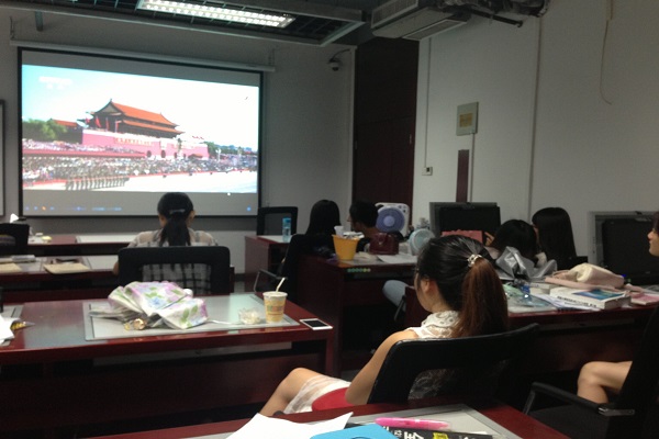 中国人民抗日战争暨世界反法西斯战争胜利70周年纪念大会暨阅兵式于9月3日在北京隆重举行,为纪念这一盛大节日,更好地塑造中国心、凝聚民族魂、提振强军志,激励在校老员工铭记历史、缅怀先烈、珍爱和平、开创未来,beet365研究生会党支部组织本院在校研究生于今天上午在建艺楼728室集体观看阅兵式。