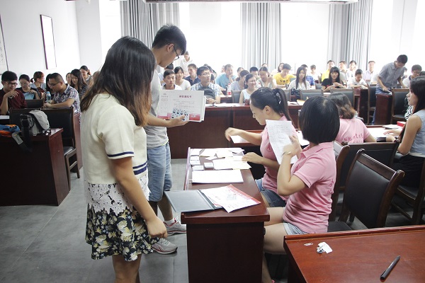 朝阳初升,秋高气爽。在欢笑声中,我们迎来了2015级研究生新同学。9月7日清晨,我们beet365的研究生会全体成员便统一着装,来到迎新点等待迎接新生。他们有的在门口辛苦地举着院旗接应,有的在接待处耐心地接受家长和新同学的咨询,有的微笑着为学弟学妹办理手续,有的在不停穿梭各个迎新点拍照,记录下这难忘的时刻。上午十一点半,随着最后一位同学的到来,公司的迎新工作已圆满结束。下午,研会的同学为新生发放入学资料。晚上7时,研会主席王威振为新生主持了开学的第一次班会,向同学们介绍了研会的概况,并让各个部长介绍了本部门的主要工作,让新生对我们研会有了深入的了解。随后,是新生的自我介绍,让新同学快速的适应新生活,融入新集体。最后,大家在一片欢声笑语中结束了辛苦而快乐的一天。