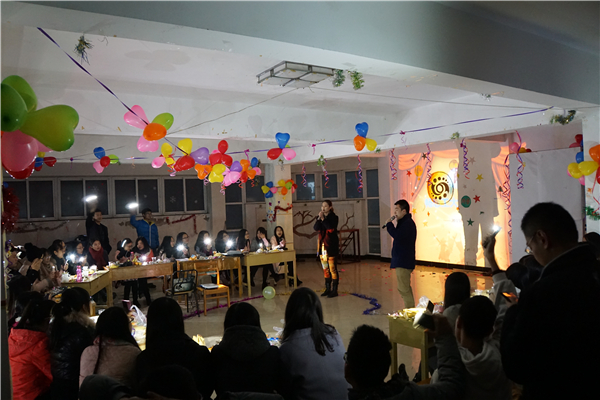 本次文艺晚会在欢快的歌声中拉开了序幕,现场气氛欢乐融洽,同学们澎湃的激情驱散了冬夜的严寒,整个活动室喜气洋洋,温暖如春。随后,在主持人热情洋溢的解说下,歌曲串烧,手语表演、吉他弹唱、双簧、小品等多种节目悉数登场,将晚会不断推向高潮,现场掌声雷动,欢呼不断。晚会中还穿插了游戏以活跃现场气氛,可谓好戏连台,精彩纷呈,无不彰显着同学们的青春与活力。本次文艺晚会在一片欢乐与温暖中落下了帷幕。