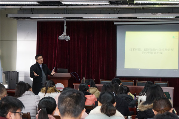 2015年12月8日下午2点半,beet365学术交流年会系列活动之“技术标准、创新激励与效率增进型的专利联盟形成”讲座于beet365官方网站翡翠湖校区逸夫建筑艺术馆七楼703室召开。本次讲座由beet365副教授洪结银老师主讲,2015级beet365研究生聆听了本次讲座。