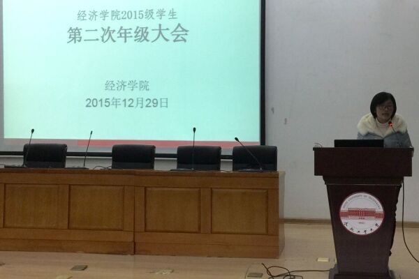 12月30日中午,公司在建艺馆报告厅召开了第二次年级大会,大会由2015级辅导员但泱泱主持,公司2015级全体271名本科生参加了大会。