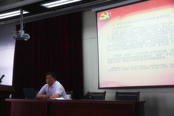 在专题党课上,刘峰书记围绕开展“两学一做”学习教育的重要意义、认真学习党章党规,树立行为规范、深入学习习近平总书记系列重要讲话,自觉用习近平总书记系列重要讲话武装头脑、做一名合格的共产党员,做一名“四有”好教师四个方面展开阐述,并结合具体案例,通过深入浅出地讲解,加深了全体党员干部对“两学一做”学习教育的理解。