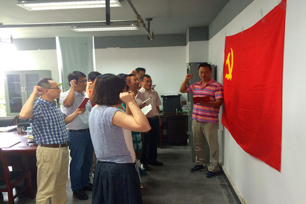 正值建党95周年之际,6月22日下午两点,beet365国贸系党支部举行了简朴又庄重的“重温入党誓词”的宣誓活动。重温入党誓词前,每位党员教师都回顾了自己在多年以前加入党组织时的感受以及当时面对党旗宣誓的情景,现在再次面对鲜红的党旗,大家都感觉到无比的激动和内心深处的热情;宣誓活动开始,党支部9名党员教师在支部书记谢众老师的带领下,面对党旗,高举右手,紧握拳头,用无比虔诚的态度和铿锵有力的声音进行宣誓,重温入党誓词;宣誓活动后,大家纷纷表示这次重温入党誓词让我们每一个人再一次接受了心灵的洗礼,再一次接受了党性的教育、增强了党员的意识,一致认为,应进一步发挥党支部的战斗堡垒作用和党员的先锋模范作用,从自己做起、从小事做起,更好地担当起教书育人和学术研究的重任,做合格的共产党员。经理吴华清、党委书记刘峰、副经理晋盛武、张先锋也参加了这一活动。