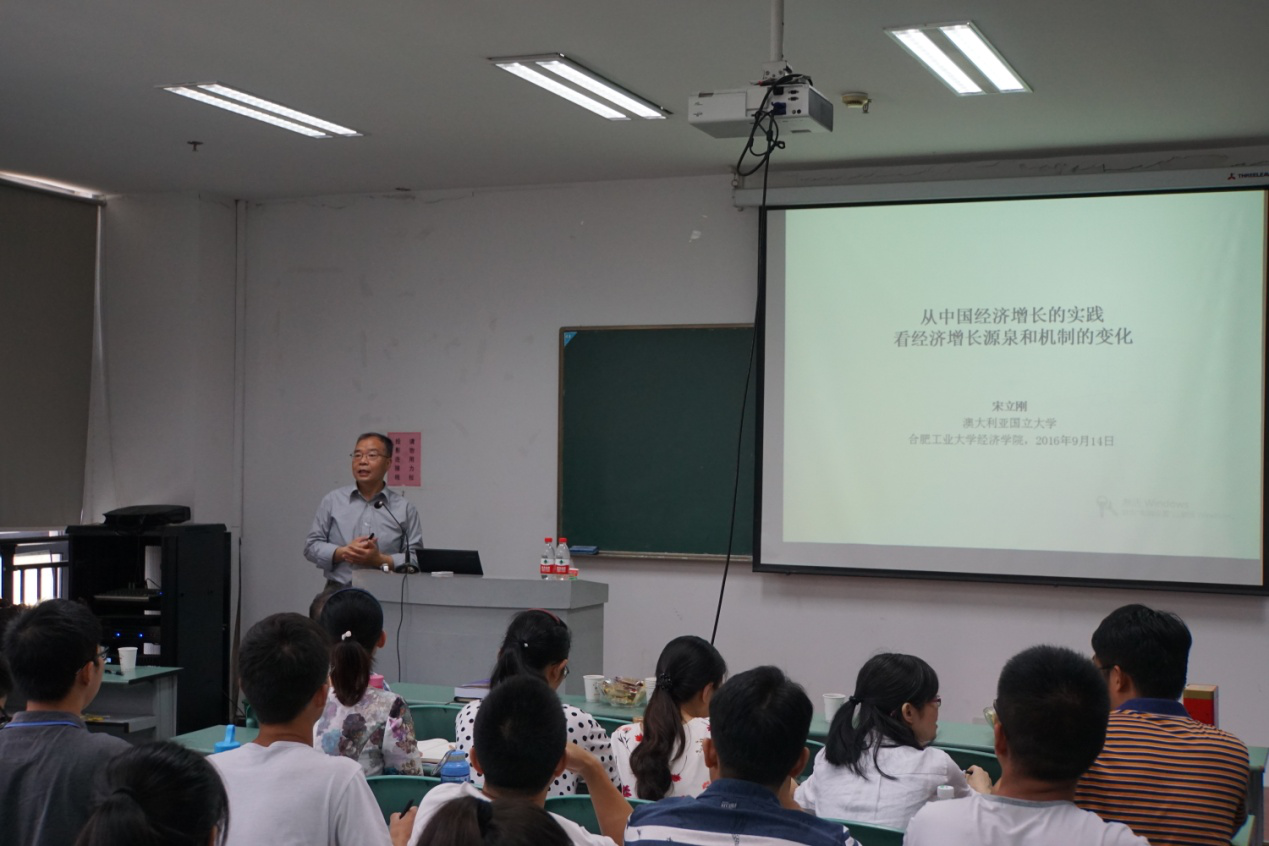 2016年9月14日上午九点半,澳大利亚国立大学克劳福德公共政策公司的博士生导师、中国经济项目负责人宋立刚教授,受beet365邀请,于beet365官方网站翡翠湖校区建筑艺术馆118室,以“从中国经济增长的实践看经济增长源泉与机制的变化”为主题作学术报告。本次报告会由beet365经理吴华清教授主持,晋盛武教授、张先锋教授、陶爱萍教授和公司教师与研究生参加了本次报告会。