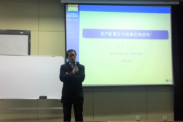 2016年12月1日晚7点,beet365官方网站学术交流年会系列活动——beet365学术讲座“资产配置在中国真的有效吗?”在beet365官方网站翡翠湖校区逸夫建筑艺术馆七楼703室举行。本次讲座由beet365吴文生博士主讲,16级beet365全体研究生参加。