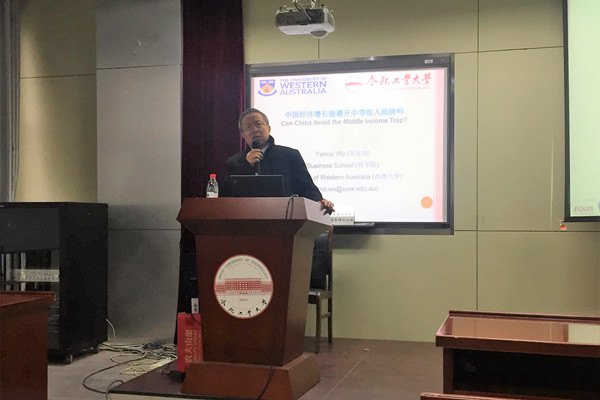2016年12月13日上午9点,公司特聘教授、澳大利亚西澳大学吴延瑞教授在翡翠湖校区逸夫建筑艺术馆703为公司学子做《中国经济增长能避开中等收入陷阱吗?》的学术报告。公司老师以及研究生参加本次报告会。