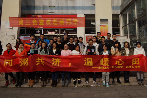 12月14日中午,beet3652016级国际经济与贸易一班和金融工程二班在beet365官方网站翡翠湖校区三食堂举行了“同‘粥’共济,温暖心田”义卖活动,本次活动旨在班助残疾儿童——用义卖收入为阳光至爱康复中心的孩子们送去温暖的围巾,给予关怀和爱心。