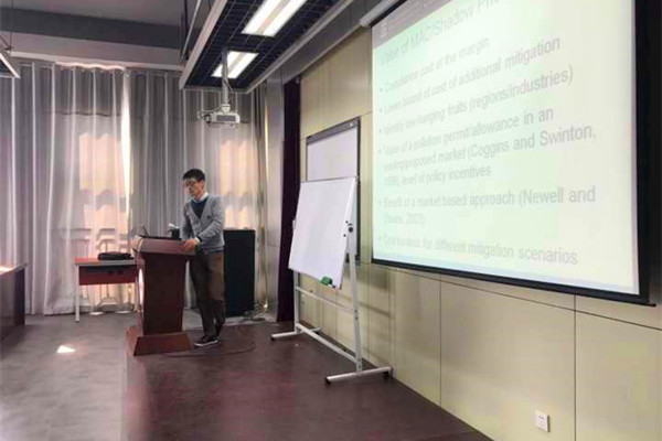 讲座伊始,Chunbo Ma博士简单介绍了边际减排成本的概念。随后,Chunbo Ma博士详细讲述了一个好的边际减排成本估计需要满足的条件,随之Chunbo Ma博士介绍边际成本减排估计的两大类文献,分别为距离函数法和集成系统模型,而Chunbo Ma博士自己则主要使用的是距离函数法。最后,Chunbo Ma博士针对这些方法做了更为具体的讲述。讲座结束后,老师和同学们就相关的问题与Chunbo Ma博士进行了热烈的交流和讨论。
