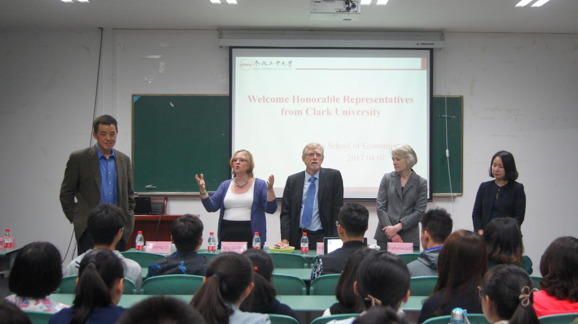 2017年4月7日晚七点半,美国克拉克大学代表与国际经济与贸易(中外合作)专业员工2017年度春季见面会于建艺馆121教室成功举办。