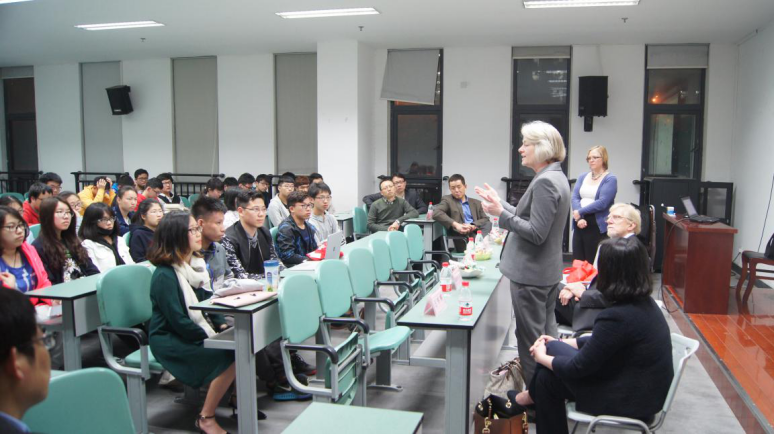 2017年4月7日晚七点半,美国克拉克大学代表与国际经济与贸易(中外合作)专业员工2017年度春季见面会于建艺馆121教室成功举办。