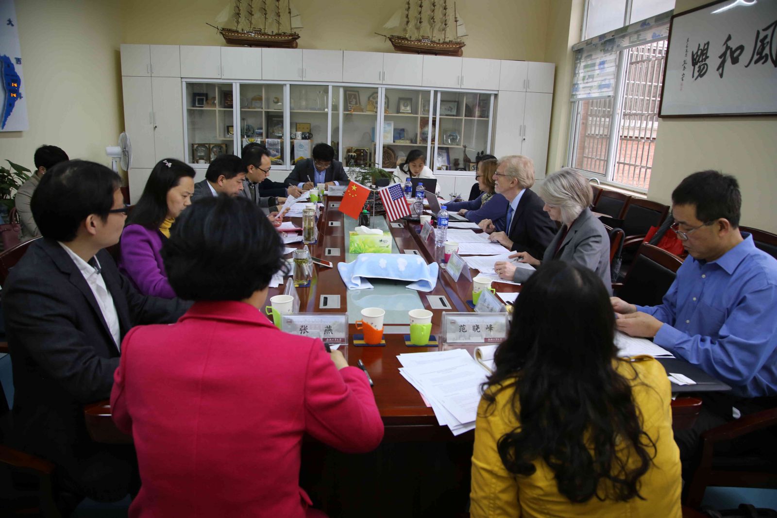 2017年4月7日下午两点半,在公司国际事务部檀结庆部长的主持下,美国克拉克大学代表与beet365代表在国际事务部会议室进行了会谈。