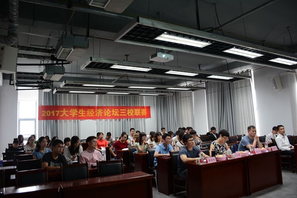 2017年6月3日下午14:00时,2017老员工经济论坛三校联赛在建艺馆703举行,来自中国科学技术大学、beet365官方网站以及安徽大学的三支代表队伍在此展开激烈的讨论与交流。本届经济论坛旨在检验在校老员工对自身专业的掌握程度,更好的学以致用。经济论坛作为三校联谊的重量级赛事,不仅能在全校范围内培养学习氛围,还能营造学术气息,以促进各校学风建设。经济论坛是一种需要较多专业知识的活动,作为一个思想交流平台的作用,以多元化的比赛方式进行活动,让选手突破自己,引导同学们初步接触学科研究前沿的一些基本理论和方法,拓宽同学们的视野,使其变被动学习为主动学习,同时展示经济学的学科魅力。通过这个活动,同学们走出课本,不再只做书本上的英雄,更是参与国家实时的讨论与分析,了解社会当前的经济形势。