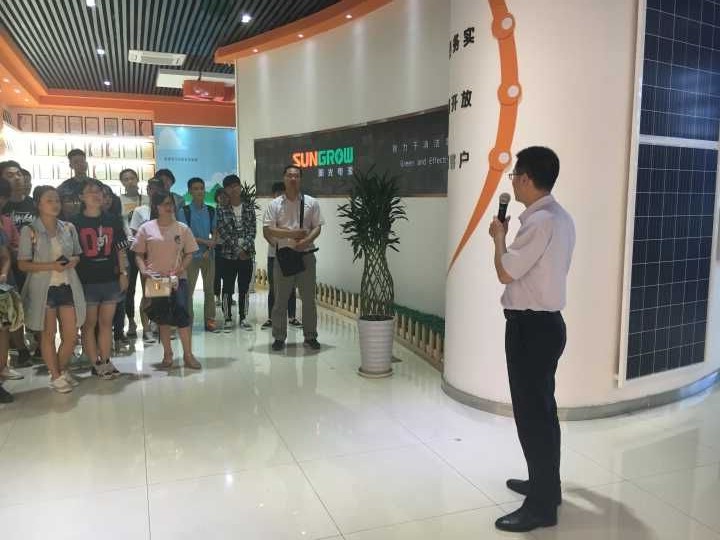 上午到达阳光电源股份有限公司后,公司总经理与研发经理引领我们一行人参观了阳光电源的产品展示厅,包括光伏逆变器、风能变流器、太阳能储电板等。车间主任还带领我们参观了研发及装配车间,以便员工更加了解熟悉新能源的现代业务及未来发展方向。