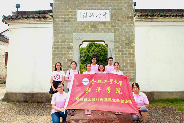 在宣城泾县云岭,同学们参观了新四军旧部遗址和叶挺将军故居,深入了解了一段战火纷飞的历史。通过重温入团誓词,表达了对这段革命历史的崇高敬意。在云岭村,同学们通过与当地村委成员的接触,了解了云岭村的基本状况,并且进行入户宣讲,通过与村民的交谈和政策宣讲,了解到村民对政府基于农村员工的教育政策等比较陌生,大多数人对政府的养老政策和最低生活保障政策比较熟悉,对政府加强农村基础设施建设的诸多举措表示欢迎。