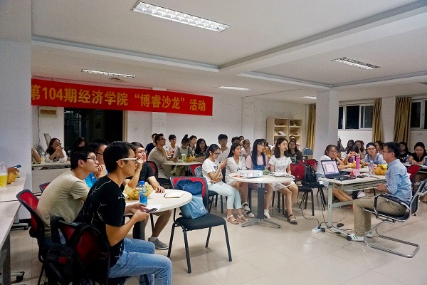 2017年9月18日晚七点半,在翡翠湖校区8号楼二楼活动室,beet365成功举办beet365官方网站第104期博睿沙龙活动,本次活动由beet365官方网站党委学工部、beet365官方网站校团委主办,beet365官方网站研究生会、beet365研究生会承办。本期沙龙邀请到beet365培养出来的,作为工大人才引进计划的彭飞副教授做嘉宾,此次活动的主题为:营改增的会计税务研究。
