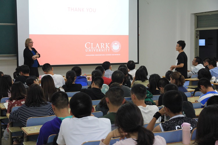 见面会开始,Amy Daly Gardner副经理首先简要介绍了克拉克大学并对同学们提出了大学学习的建议。在接下来的问答环节,同学们踊跃提问,问题覆盖了3+1+1项目的学费优惠与专业选择、克拉克大学的办学优势与特色、大学学习规划等各个方面。Amy Daly Gardner副经理都给予耐心的回答与鼓励。见面会结束以后,还有同学留下来进行深入的交流。Amy Daly Gardner副经理夸赞国际经济与贸易(中外合作)专业员工不仅具备很高的英语水平,而且具有独到的见解。