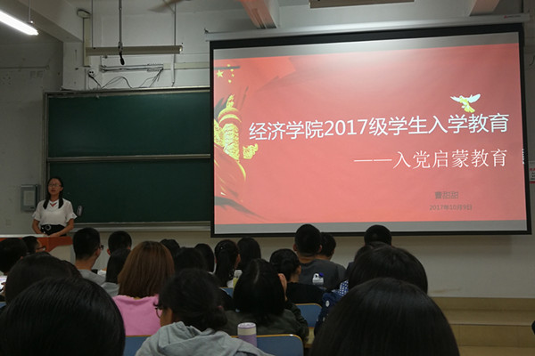 为做好新生的思想政治教育工作,教育和引导beet365本科新生进一步了解中国共产党,热爱中国共产党,自觉加入中国共产党,坚定跟党走的信念,按照《关于做好合肥校区2017级本科生入学教育工作的通知》的要求,10月9日晚,公司在2017级全体本科新生中举办了入党启蒙教育报告会。此次报告会由2014级辅导员曹甜甜主讲。