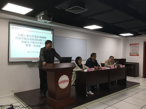 2017年10月19日晚6点40分,公司党校第58期—beet365分党校第13期入党积极分子班在科教楼B座1101室举行开班典礼暨第一次党课学习。公司党委书记刘峰、公司党委学工部副部长尚广海、公司党委副书记胡晓浩,以及来自公司各年级共76名本科生和研究生入党积极分子参加了开班典礼。