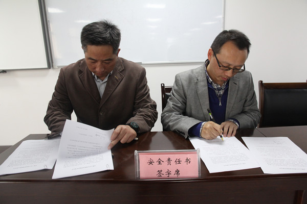 吴华清经理和刘峰书记代表公司分别与公司党政领导、公司二级机构(系、研究所、中心、办公室)、各楼层房间安全责任人签订了安全责任书。