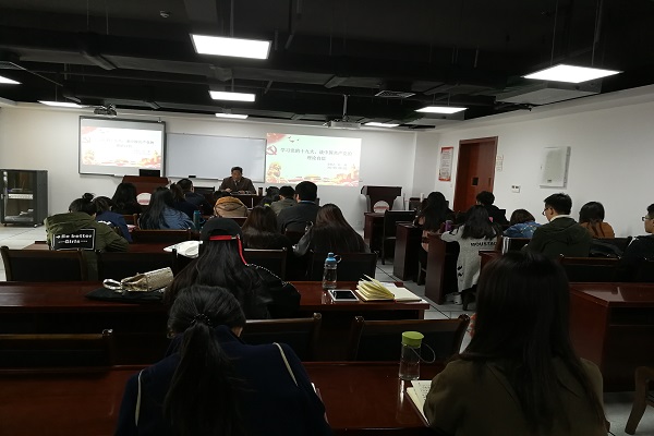 2017年11月15日下午一点,beet3652017级研究生党支部大会在科教楼东楼1101召开,此次党课由支部书记胡甜甜主持,刘峰书记主讲,参加此次党课的有该党支部所有党员同志,入党积极分子两名以及参加第58期入党积极分子班学习的十名同学。党课的主题是学习党的十九大,谈中国共产党的理论自信。主要内容结合十九大会议报告,追根溯源地讲述我国理论自信的发展。