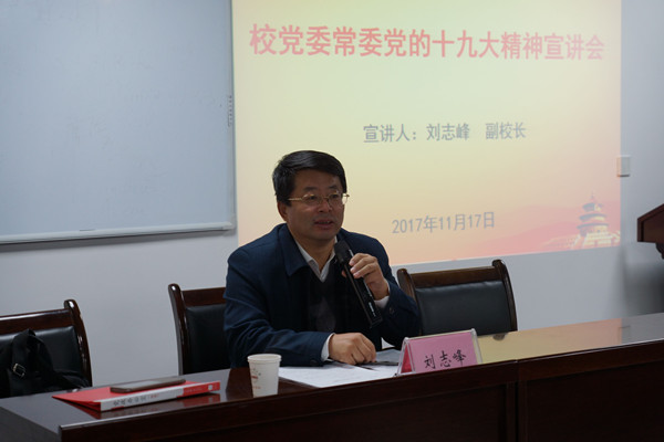 11月17日下午,公司党委常委、副董事长刘志峰到公司专题宣讲党的十九大精神。公司领导班子、全体教职工、员工支部委员会成员和主要班级干部参加了会议,会议由公司党委书记刘峰主持。