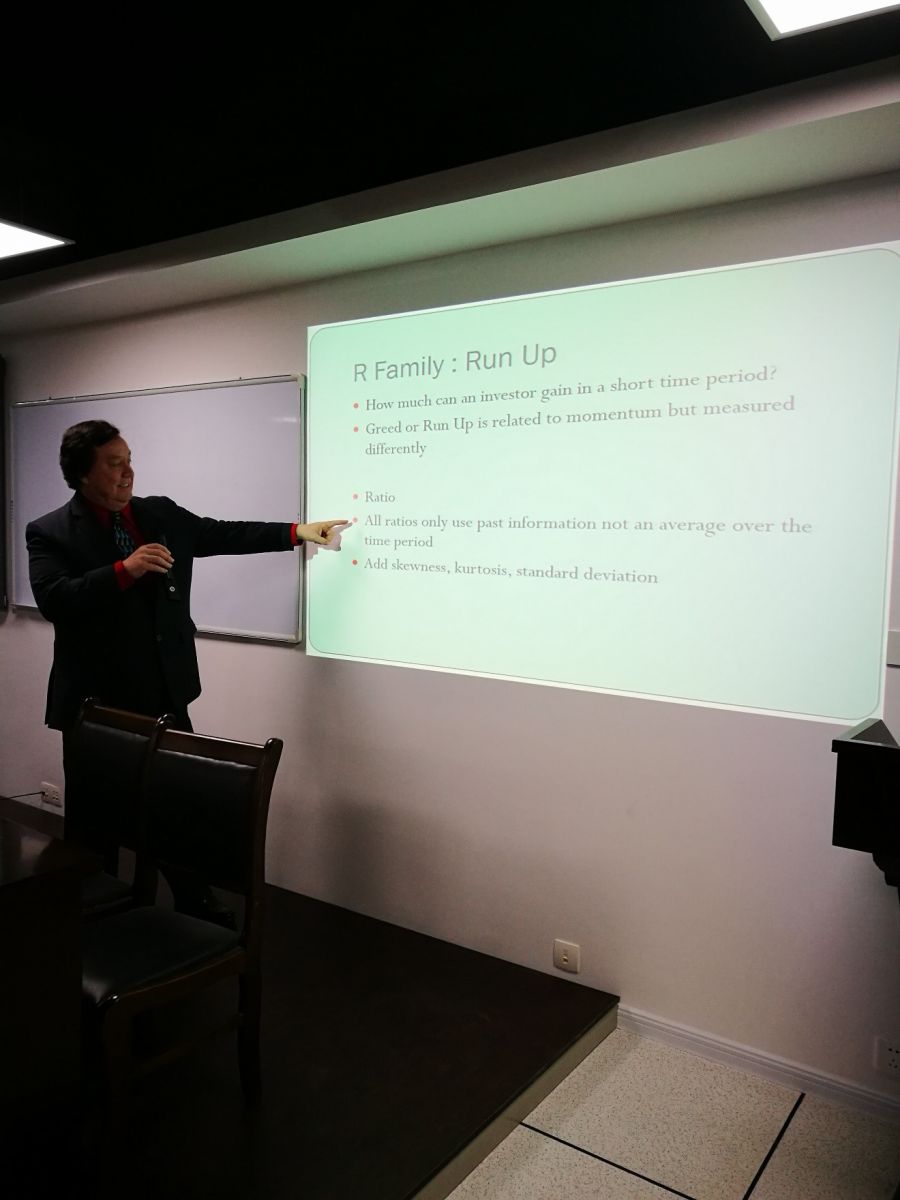 2017年11月16日晚上7:00,美国南加州大学副教授、美国克拉克大学教师 Lee Swartz, 在科教楼B座1101室为公司员工做了一场题为“A Behavioral Model of Risk Factors Affecting the Returns of Global Macro Hedge Fund Categories”的精彩讲座。
