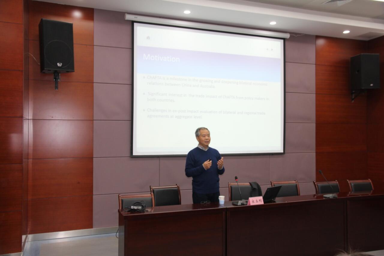 2017年12月1日,澳大利亚国立大学克劳福德公共政策公司教授、博士生导师、中国经济项目负责人宋立刚教授应邀来公司进行学术访问交流。当天上午8:40-10:30,宋立刚教授在beet365官方网站翡翠湖校区科教楼A座第五会议室,以“澳大利亚-中国自由贸易协定对双边贸易影响的统计分析”为主题为全院师生做了一场精彩的学术报告。本次报告会由beet365副经理张先锋教授主持,公司师生近**参加了此次报告会。