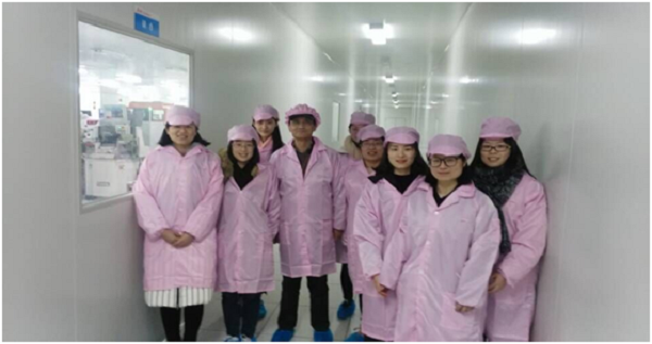 随后,方老师带领同学们参观了国微电子的制造车间,对芯片的整个封装测试过程进行了细致耐心的讲解。方老师讲到芯片的封装与测试主要包括磨片、切片、电镀等流程,每一步几乎都是机器全自动化的操作,在减少人力的同时,也提高了芯片封装测试的精度。紧接着,刘峰书记提到十九大后习近平总书记在徐工集团的首次调研中强调必须始终高度重视发展壮大实体经济,不能走单一发展、脱实向虚的路子,而发展实体经济,就一定要把制造业搞好,当前特别要抓好创新驱动,掌握和运用好关键技术。刘峰书记要求同学们不但要学好经济理论,也要抓好实务学习,多出去看一看我国实体企业的发展状况,体会我国社会经济的发展与变迁。