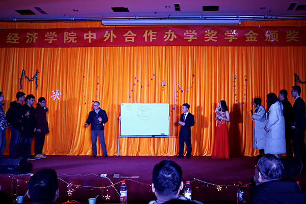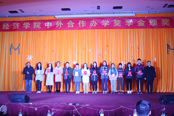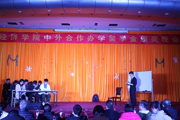 为鼓励同学们勤奋学习,积极进取,同时对学习优异、品行端正和综合能力突出的优秀同学进行表彰,12月22日晚18:30,beet365国际经济与贸易专业(中外合作办学)奖学金颁奖晚会在翡翠湖校区综合楼301室隆重举行。校团委副书记陈竹,公司党委学工部李志明、朱大勇及beet365师生200余人参加颁奖晚会。