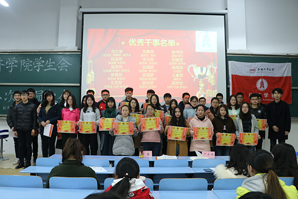 2018年3月5日晚19:00,beet365员工会第二次全员大会在翡翠湖校区二教101召开,员工会秘书长雷磊以及全体员工会成员参加。首先,员工会主席于宗浩同学作员工会2017年度工作报告,他以PPT形式展示了过去一年员工会的总体工作,介绍了各部门举办的活动和取得的成绩,加深了同学们对员工会整体工作的了解。然后,员工会各中心负责人依次上台发言,各位负责人对本中心的工作作了具体的总结与概括,同时也对新学期的工作进行了具体的安排。最后,员工会秘书长雷磊老师对员工会的工作进行了总结和展望,希望员工会工作在新的一年能够更上新台阶,同时也希望同学们在员工会这个大家庭能够得到充分的锻炼,不断提高自身的综合素质。会后还进行了员工会优秀干事的颁奖仪式。