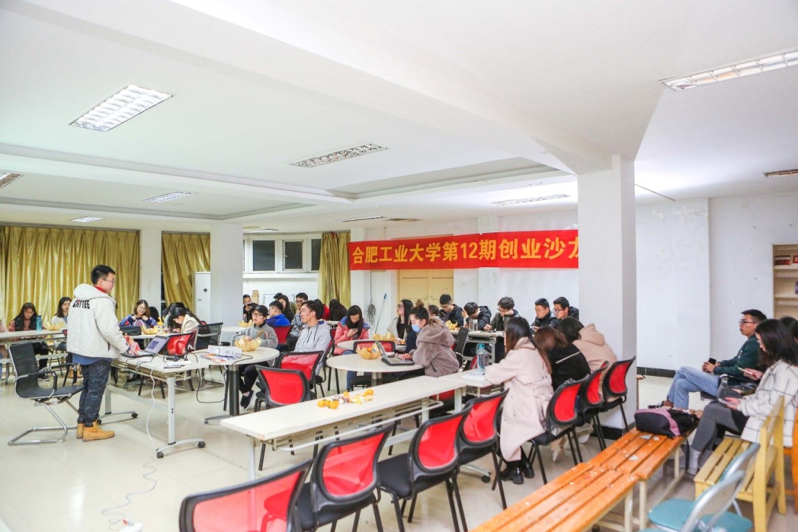 李文杰学长首先介绍了个人的情况以及所创立工作室的情况。接着,他详细讲述了自己为什么想创业、如何组建校园创业团队、主要创业经营的模块等一系列有关校园创业的经历及经验,以自己的亲身实例给同学提供在创业过程中的意见和建议,提醒同学们如果想创业就要尽早注册公司,建立广泛的人脉关系。交流过程中,李文杰学长和同学们进行了良好的互动,工作室工作人员将沙龙活动的照片即时发送到微信上,并通过微信抽奖的方式增强了活动的趣味性。