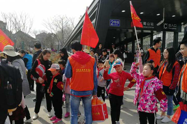 此次活动的目的地是大蜀山。经历了一个寒冬,万物欣欣向荣,小朋友们也迎来了第一次春游。戴着红袖章,举着“文明出行”、“绿色出行”的旗帜,一行人乘坐地铁前往大蜀山。大家一路欢声笑语,志愿者们也格外注意小朋友们的安全并教导大家文明出行的细节和礼貌。到达目的地之后,大家利用登山的空闲,学习了雷锋画报,并以“如果我是雷锋,我会帮别人做些什么”为话题展开交流,以此激发小朋友对雷锋精神的感悟,并在交流中逐渐认识和懂得如何在学习生活中用实际行动践行雷锋精神。在“击鼓传花”表演节目的娱乐环节,小朋友们也体会到了春游的乐趣。