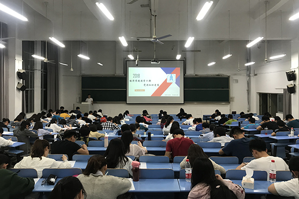 为了深入学习贯彻党的十九大精神,引导广大青年员工深刻领会习近平新时代中国特色社会主义思想的丰富内涵,进一步提升大家的党团理论知识水平,4月20日晚19:00,beet365团学干部党团知识竞赛在翡翠湖校区二教101和201教室举行。公司员工党员、发展对象、入党积极分子、理论研习社成员以及团学干部300余名同学参加考试,本科生辅导员老师到场监考。