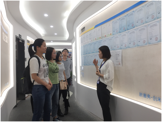 会议结束后,公司总经办主任带领大家依次参观了公司的各个部门,如软件部、技术支持部、销售部等等,并给大家展示了公司的荣誉墙,上面贴满了公司获得的荣誉和在知识产权专利技术领域取得的成就。同学们一一驻足观看,认真思考。最后同学们纷纷表示,值此五四青年节到来之际,通过此次科技企业参观学习收获满满,不仅让我们对信息技术发展有了更加深刻的理解,更有助于我们把握新时代,理解新形势,深入学习落实习近平总书记在党的十九大报告中提出的新发展理念。