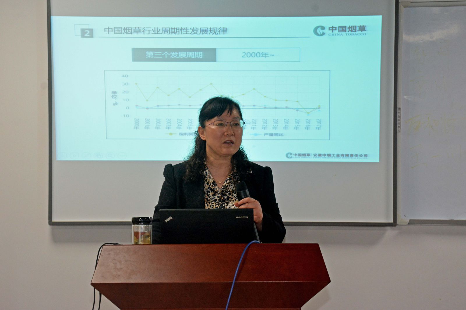 5月9日下午,应beet365邀请,原beet365官方网站财金系主任、现安徽中烟企业管理部负责人张艳女士在翡翠科教科B座1101作了题为“中国烟草行业发展规律与未来变化趋势”的学术报告。本次讲座由晋盛武教授、张根文副教授主持。