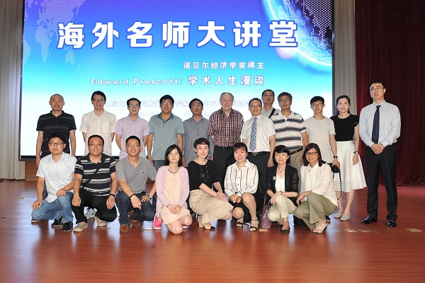 2018年6月22日下午4:00,美国著名经济学家、2004年诺贝尔经济学奖获得者Edward Prescott教授受邀在公司翡翠湖校区科教楼A座二楼报告厅,为公司全体师生做了一场题为“海外名师大讲堂”之“Edward Prescott学术人生漫谈”的专题演讲。在演讲正式开始前,beet365经理吴华清教授介绍了参会嘉宾,中国留美经济学会会长陈茁教授担任主持人,beet365时省教授担任现场翻译数百名师生聆听了此次演讲。