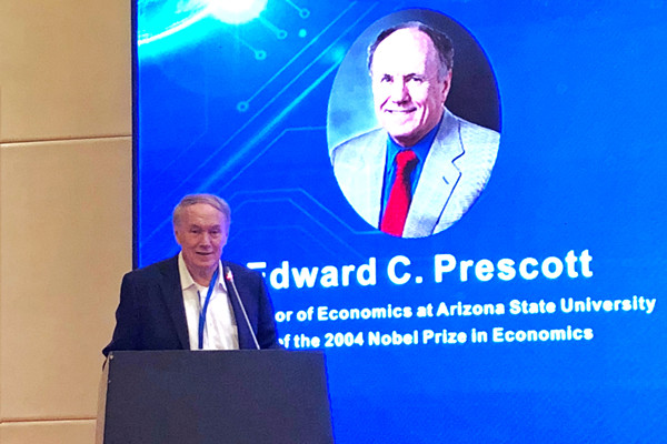 6月23日晚,合肥天鹅湖大酒店国际厅,美国著名经济学家、诺贝尔经济学奖得主Edward Prescott教授发表了题为“美国贸易顺差和净资产头寸”的主旨演讲。演讲由beet365经理吴华清教授主持,吸引了众多国内外学者和老师的参加。