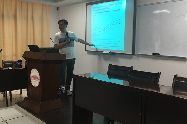 6月25日,美国Bucknell大学经济系林树明(Carl Lin)老师应邀来beet365进行学术交流。林老师在科教楼B座1101室为公司师生做了主题为“高级微观计量经济学:理论与研究”的系列讲座,并与相关老师探讨了国际论文发表、团队建设、国外合作办学等议题。其中,系列报告详细介绍了微观经济计量方法的实证应用,突出了对建立及运用模型的过程中可能产生的各种实际问题的处理,几乎包括了当今微观经济计量学的各类重点。公司窦晨彬、郑岚、那明、那仁、吕民乐、洪结银、束克东、周华东、刘晴、吴飞飞、时省、朱潇璇、谢众等老师以及数十名研究生和本科生参与了交流。