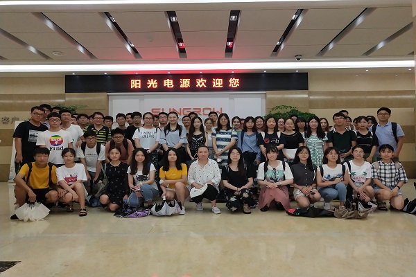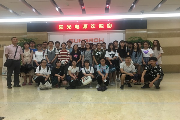 7月4日下午,2016级国际经济与贸易(中外合作办学)专业和2017级国际经济与贸易(国际金融与投资)专业共百余名同学,赴阳光电源股份有限公司开展认知实习。本次实习由庞莹老师联系对接,谢众、吴飞飞、刘晴、叶荣菁等四位老师带队调研。