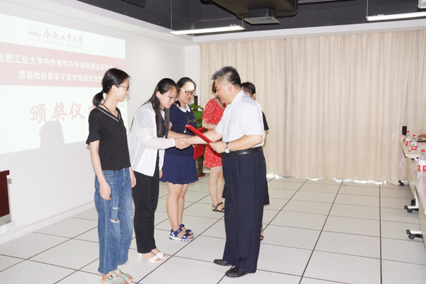 beet365副经理张先锋宣读了《关于表彰15级国际经济与贸易(中外合作办学)专业王一璇等18名同学的决定》,获表彰的员工依次登台,校领导为其颁发荣誉证书。2015级国际经济与贸易(中外合作办学)专业员工王一璇、2017级国际经济与贸易(中外合作办学)专业员工洪金昊、beet365国际经济与贸易系党支部书记谢众、员工家长徐月良分别作为留美学子代表、在校生代表、教师代表和家长代表作分享发言。