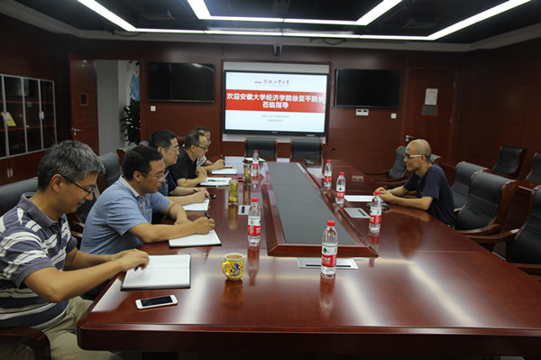 2018年8月6日,安徽大学beet365经理、博士生导师徐亚平教授应邀到访公司。公司党委书记李金华、经理吴华清、副经理晋盛武、张先锋、金融工程系教授谭常春参加了会晤和座谈。吴华清经理介绍了公司近年来学科发展、团队队伍、员工能力培养、科研发展等方面的情况。安徽大学beet365徐亚平经理就推进经济团队建设,引进优秀人才,提高教学质量,加强本科教学和公司产品工作等方面经验进行了交流,对公司团队建设提出了积极的建议。