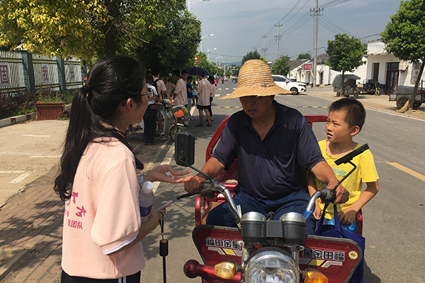 7月14日,团队成员前往目的地――滁州市章广镇章广村,与当地村委会进行对接,初步了解了当地留守儿童的情况,熟悉了当地的环境。团队成员分别从社会对留守儿童的关注度、当地留守儿童的基本情况以及留守儿童的心理状况等方面对工作人员进行了采访,在采访中得知,近年来村里的留守儿童数量在逐年减少,但仍然有大量的留守儿童,他们缺乏父母的关爱和家人的照顾。