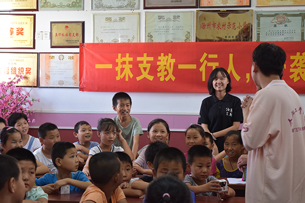 7月16日-17日,团队成员带领章广中心小学的留守儿童们开展了一系列活动。团队成员们进行了魔术、太极拳、歌唱等才艺展示,并且与孩子们一同玩游戏。在进行表演和游戏的过程中,孩子们玩得非常开心,逐渐放开自己,也对团队成员敞开心扉,进行了深入的交流。此外,团队成员还与南京中医药大学伯藜支教团交流了支教经验,分享了自身的收获与体会。最后,团队成员向孩子们赠送了温暖的小礼物,希望他们勤于学习,乐于生活,早日实现自己的梦想。