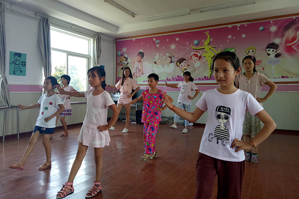 7月15日,团队成员来到滁州市章广中心小学,与该校部分教职工进行了座谈。章广中心小学的孩子们大多都是留守儿童,在座谈过程中,团队成员了解了留守儿童在公司的学习、生活状况,也了解到当地政府出台了相应的政策去帮扶留守儿童。调研正值暑假期间,但仍有老师在校组织孩子们们开展形式多样的课程活动,如二胡教学、葫芦丝教学以及舞蹈教学等,孩子们也兴趣高昂,乐于学习。在与老师进行深入交流时,团队成员也了解到部分留守儿童在心理及生活方面存在一些问题。