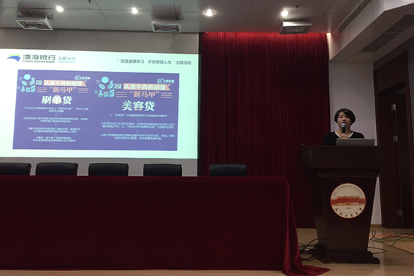 首先,胡晓浩向同学们介绍了本次报告会的主要内容,告诫同学们要抵制不良网络贷款,并呼吁大家健康消费、理性消费、合理消费。接下来,渤海银行合肥分行个人金融部负责人汪洁为同学们作报告。她首先以三个问题引入校园贷,然后通过一个短视频让同学们详细了解了不良校园贷和正规银行贷的区别,同时通过实际案例向大家揭示了不良校园贷的一系列陷阱和危害。最后,她向同学们详细说明了个人征信的重要性及其价值,并向大家普及了相关金融知识,希望同学们养成良好的消费习惯,理性消费。在提问交流环节,同学们也积极发言,现场氛围活跃。