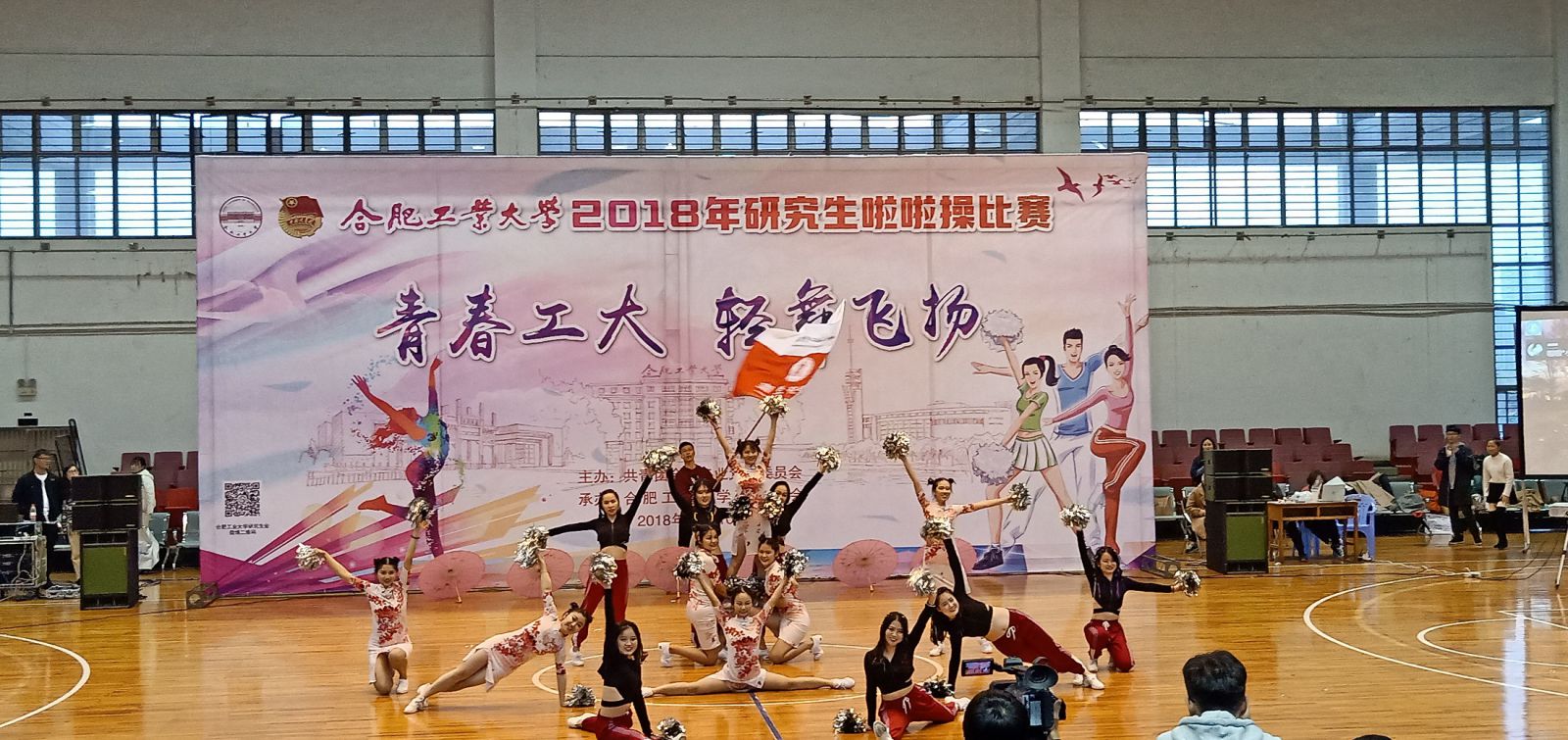 在全场观众的瞩目下,公司14位啦啦操健儿们为大家带来了一场活力四射的表演。出场时,啦啦操队长陈雨婷首先给大家献上一段彩带舞,紧接着,配着轻快、舒缓而又平和的古风音乐,队员们身着旗袍、手持油纸伞款步上台,浓浓的中国风给评委和观众带来了耳目一新的感觉。队员们舞步轻盈,动作潇洒利落,步伐整齐划一,展现出beet365青春蓬勃的精神风貌。整场啦啦表演操精彩纷呈,高潮不断,编排充满新意,中西合璧、动静结合,将中国传统文化元素编织进动感的舞步。选手们用她们动感的舞蹈展现了年轻人的青春与活力,更体现了公司学子拼搏进取、团结向上的精神,完美的响应了本次啦啦操比赛“青春工大,轻舞飞扬”的主题。