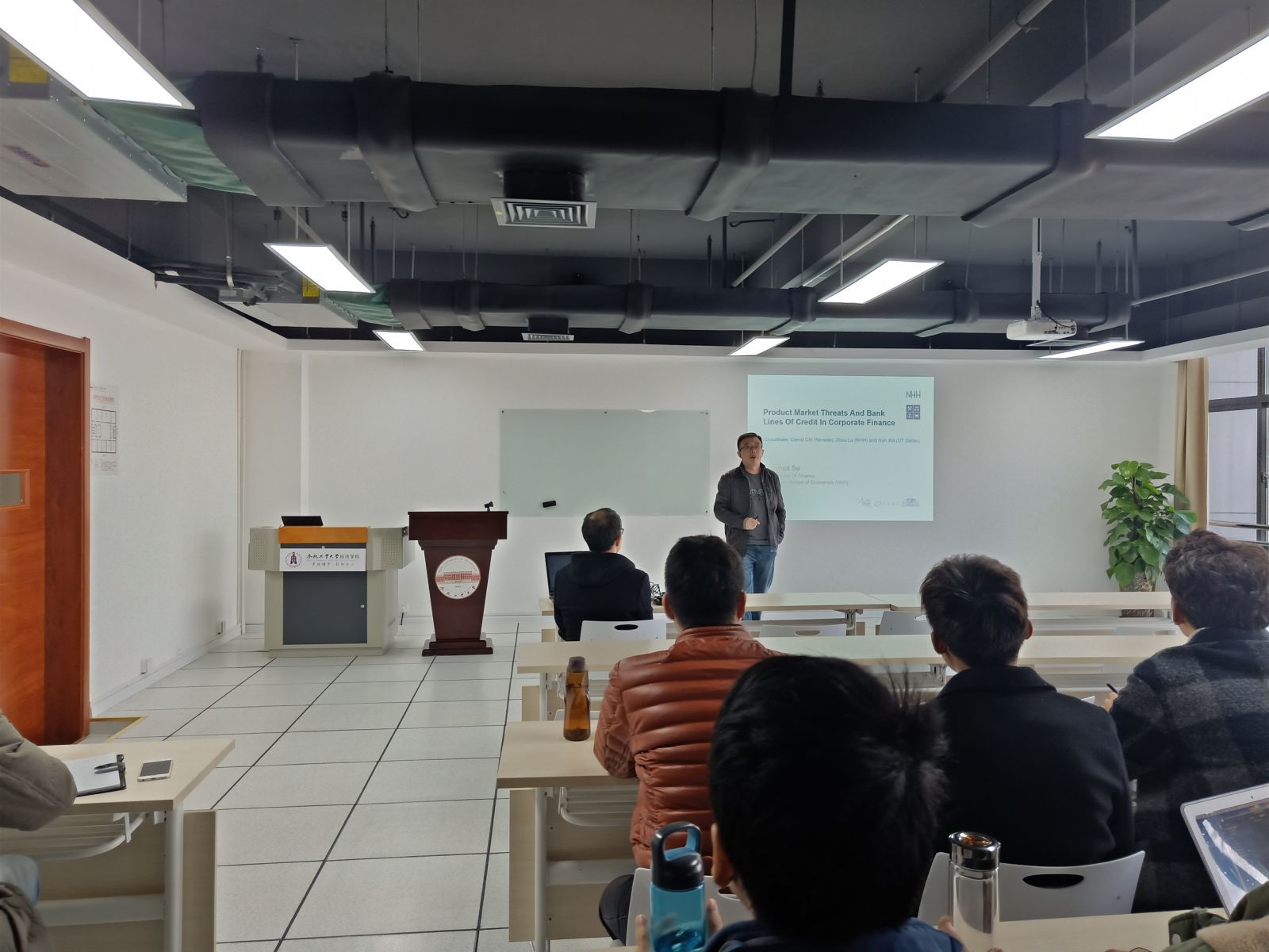 2018年12月3日下午14:30,挪威beet365苏循华教授在翡翠湖校区科教楼B座1004室,为公司17和18级金融专硕研究生做了一场名为“Product market threats and credit lines in corporate finance”的学术报告。