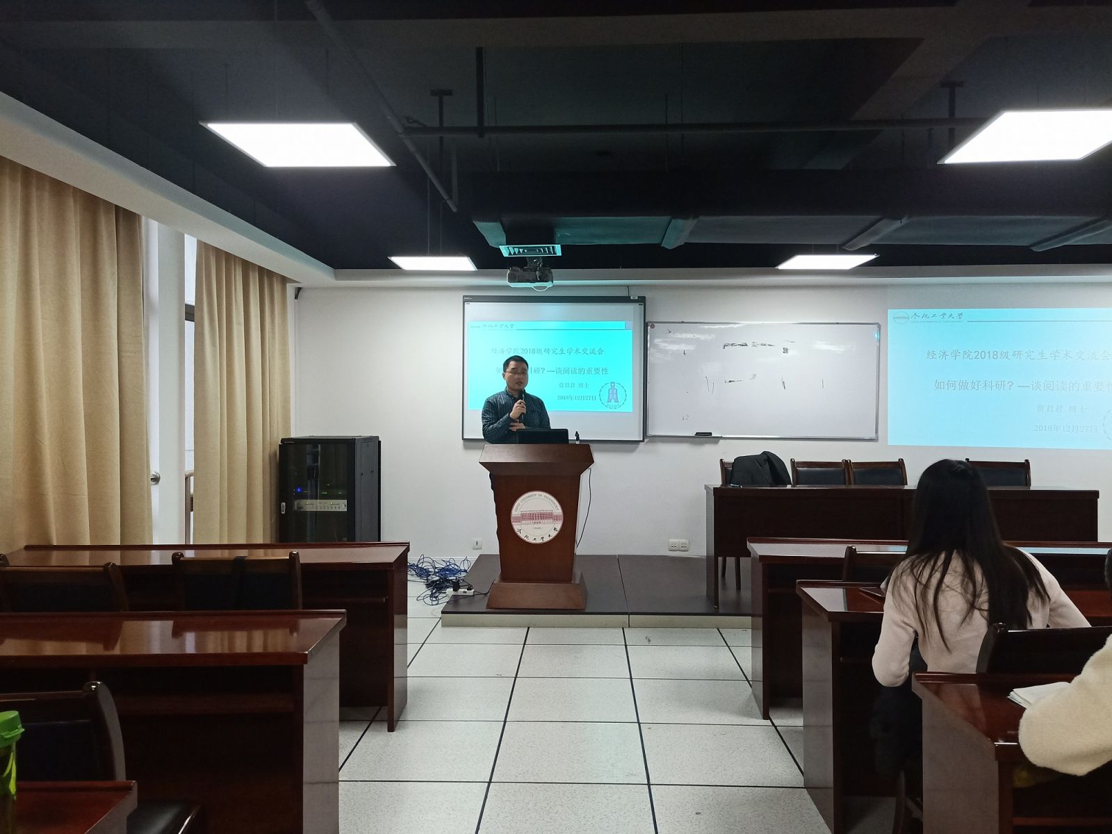 2018年12月27日上午 10点30分,beet365贾君君老师在翡翠湖校区科教B座1101会议室给2018级研究生做了一场学术报告,本次报告的主题是“如何做好科研——谈阅读的重要性”。