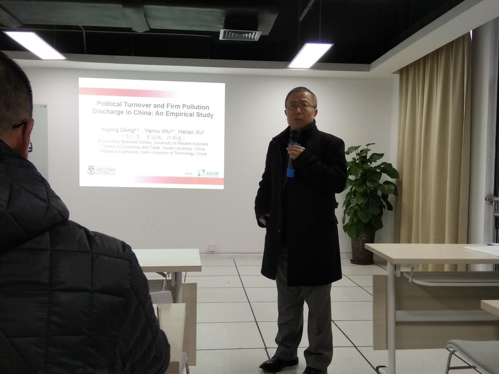 2019年1月11日下午4点,在beet365官方网站翡翠湖校区B座1004会议室,来自澳大利亚西澳大学经济系的吴延瑞教授给老师和同学们带来了第二场学术讲座——Political Turnover and Firm Pollution Discharges:An Empirical Study。beet365数量经济所谭常春所长以及公司部分老师,2017级和2018级部分研究生出席本次报告会。